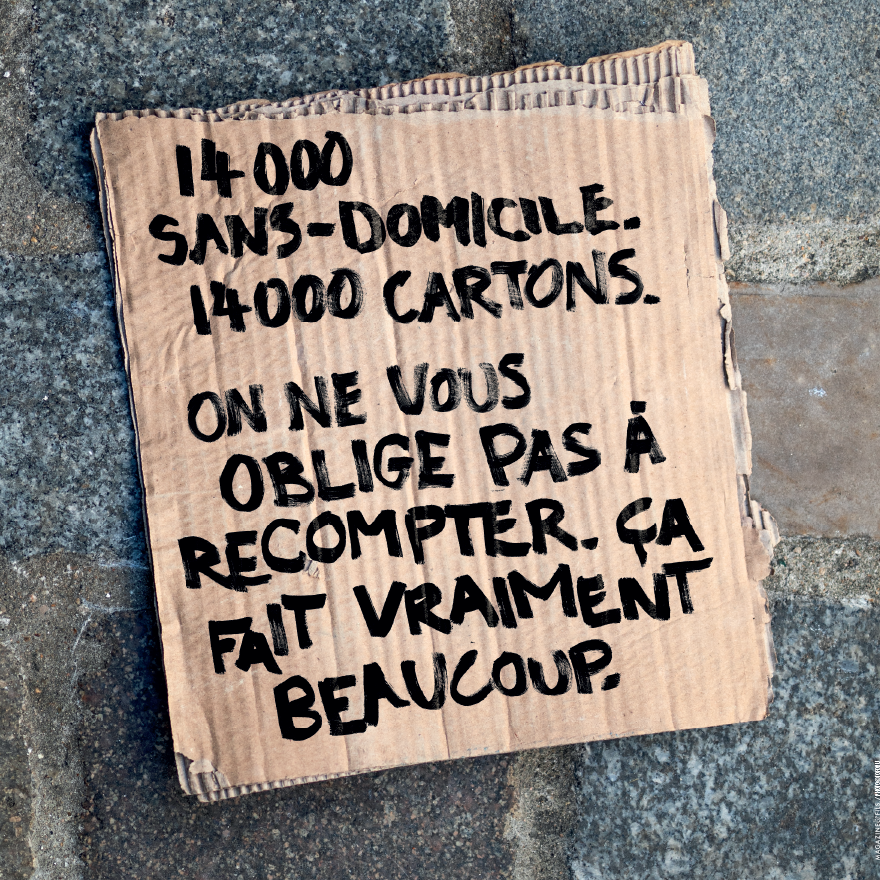 Comment matérialiser auprès du grand public et des institutions ce que représentent 14 000 sans-domiciles dans la métropole de Lyon, pour les sensibiliser, les impliquer et inciter aux dons ?