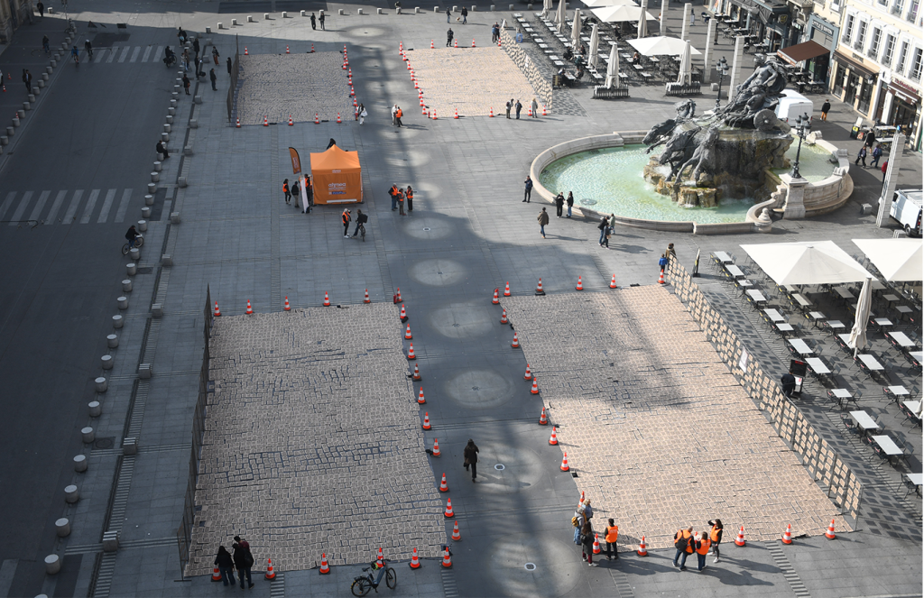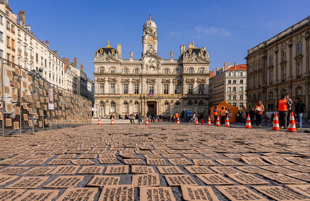 Dans la continuité du concept publicitaire des cartons installé en 2023 par l’agence, une grande opération est lancée en octobre 2025 : 14 000 cartons ont été disposés place des Terreaux à Lyon face à l’Hôtel de Ville, comme autant d’appels à l’aide.